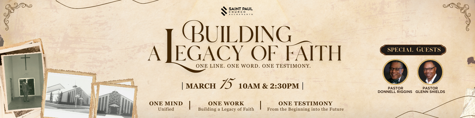 At Saint Paul Church of Sacramento, we are a community of faith who accepted the challenge to live our lives believing in Jesus, becoming who God made us to be, and building His Kingdom. God's transforming love in Christ is the Legacy of Faith we have been given by those that came before us. It is the legacy of faith we build our lives on and will pass on to the world around us. Our mission: Building a Legacy of Faith.